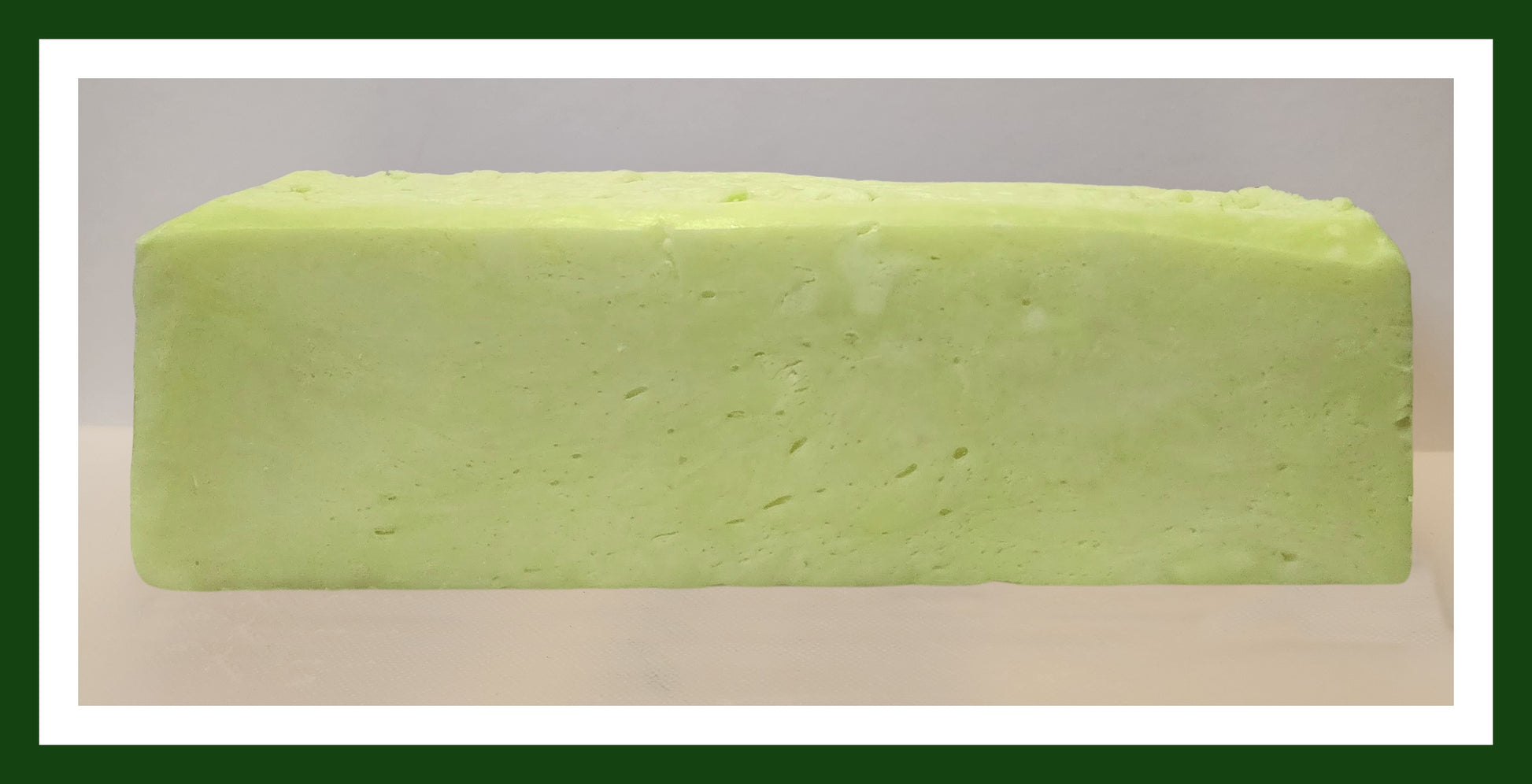 This premium tea tree soap loaf weighs approximately 2.75 lb and arrives sealed in food-grade shrink wrap. Cut it yourself with a sharp knife, or choose our cutting service ($5 per loaf) for ten 1-inch bars stacked together (not individually sealed). We offer no exceptions to the above. We also offer a nice soap cutter for purchase. Soap Saver Dishes are also available. Store your soap in any plastic resealable container.